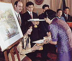 | On April 20, 1999, Her Royal Highness Princess Galyani Vadhana presided over the opening of the watercolour exhibition "My Beloved Thailand 1999" by SomJai Reiss at the Siam City Hotel | ![]() |